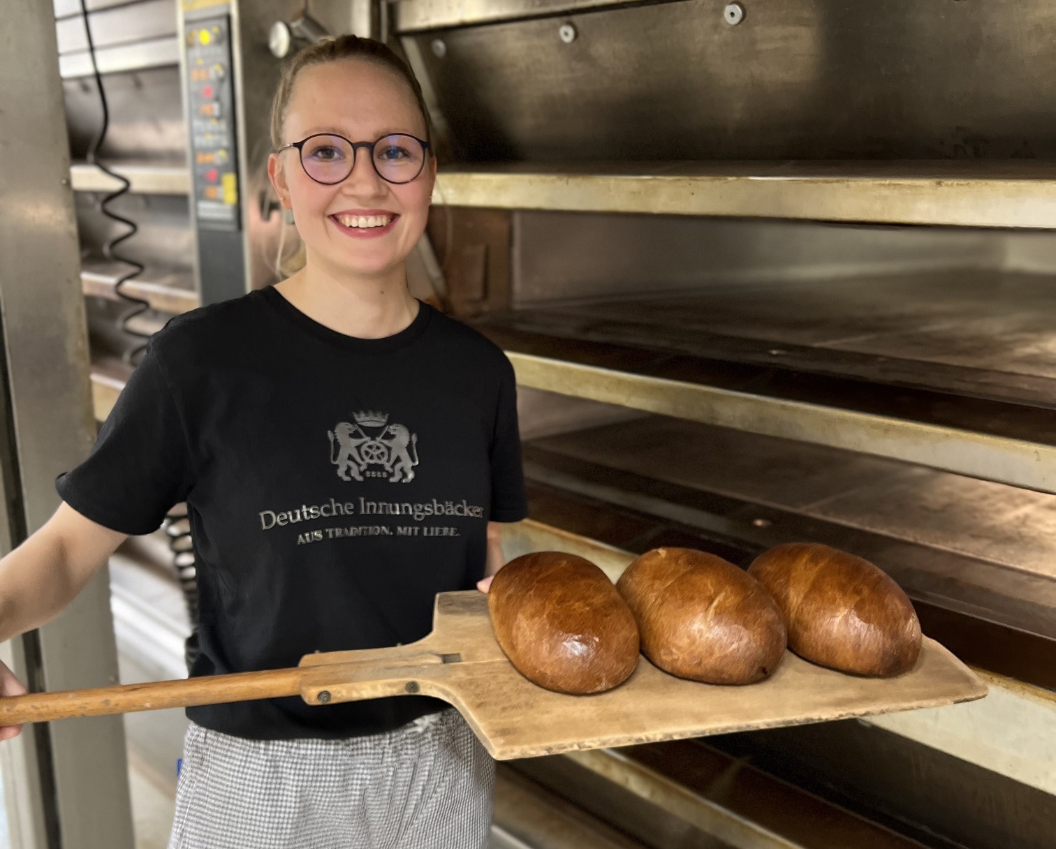 Die Ausbildung zur Bäckerin dauert drei Jahre und findet dual im Betrieb und in der Berufsschule statt. Dort lernst du alles über Teige, Öfen, Hygiene und Organisation in der Backstube. Sophie ist 23 Jahre alt und hat die Ausbildung im vergangenen Jahr erfolgreich abgeschlossen, nachdem sie zuvor ihren Bachelor in Lebensmittelmanagement absolvierte.