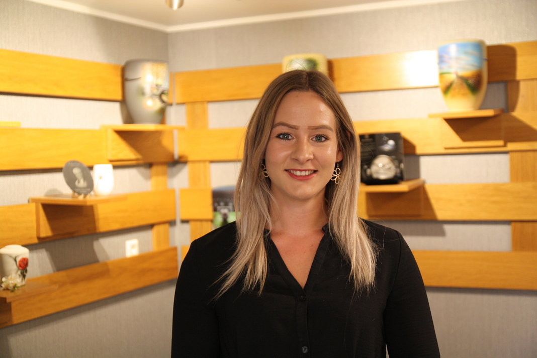 Die 23 Jährige ist sogar damit aufgewachsen, denn ihre Ausbildung zur Bestattungsfachkraft (oder: Bestatterin) hat sie im Familienbetrieb, dem „Bestattungshaus Nesseaue“ in Friemar, absolviert. „Das Bestattungshaus wurde von meinem Vater und meinem Onkel gegründet. Ich bin damit groß geworden und schon als Kind im Bestattungswagen aus dem Kindergarten abgeholt worden. Mit 16 war ich dann zum ersten Mal dabei, wie wir jemanden aus dem Hospiz abgeholt haben, um zu schauen, wie das ist und ob ich Berührungsängste habe. Danach war für mich eigentlich klar, dass ich die Ausbildung direkt nach der Realschule beginnen würde.“